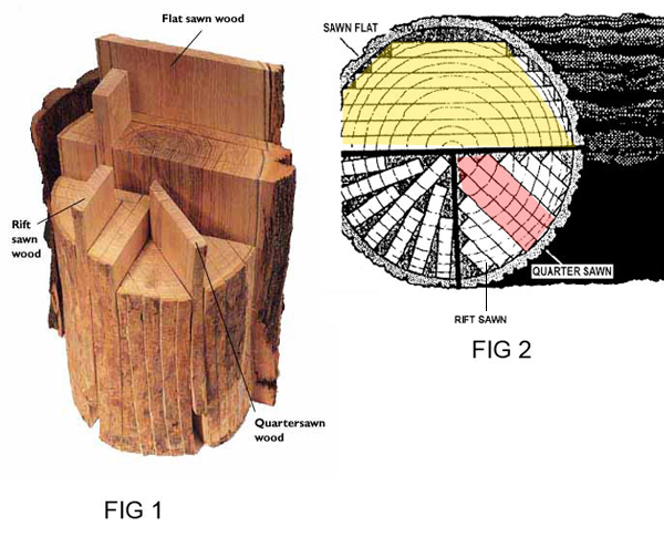 Normalmente per sezionare un albero vengono utilizzati tre tipi di tagli, ovvero il taglio di quarto (quarter sawn), tangenziale (flat sawn, slab sawn, slab cut) e rift sawn. A sinistra è riportata un'immagine in cui sono riportati i tre tagli.