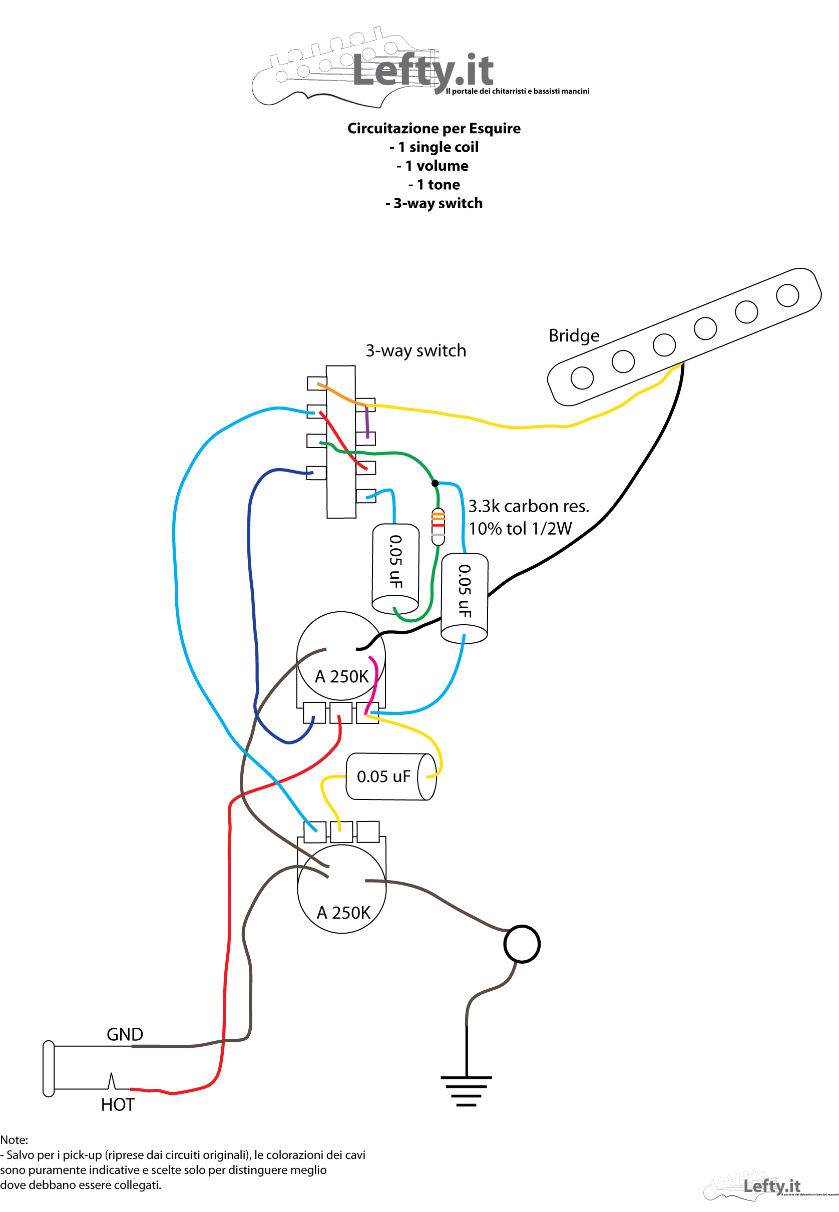 Rispetto a quello che si dice normalmente, il pick-up al manico NON e' l'unica differenza tra le circuitazioni di Esquire e Broadcaster… il circuito e' totalmente diverso.