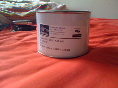 Vi bastera' andare dal colorificio chiedendo il colore desiderato preso dalla Fender Chart, meglio ancora con a disposizione il codice originale (per esempio, nel caso del Surf Green, chiedere del Fender Surf Green, codice 2461L). Il colorificio fara' richiesta direttamente a DuPont, che gli comunichera' la formula originale, con cui produrre il colore tanto desiderato.
