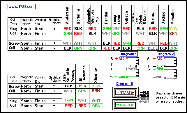 - Pickup Wire Colors, su 1728.org - http://www.1728.org/guitar8.htm